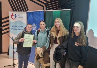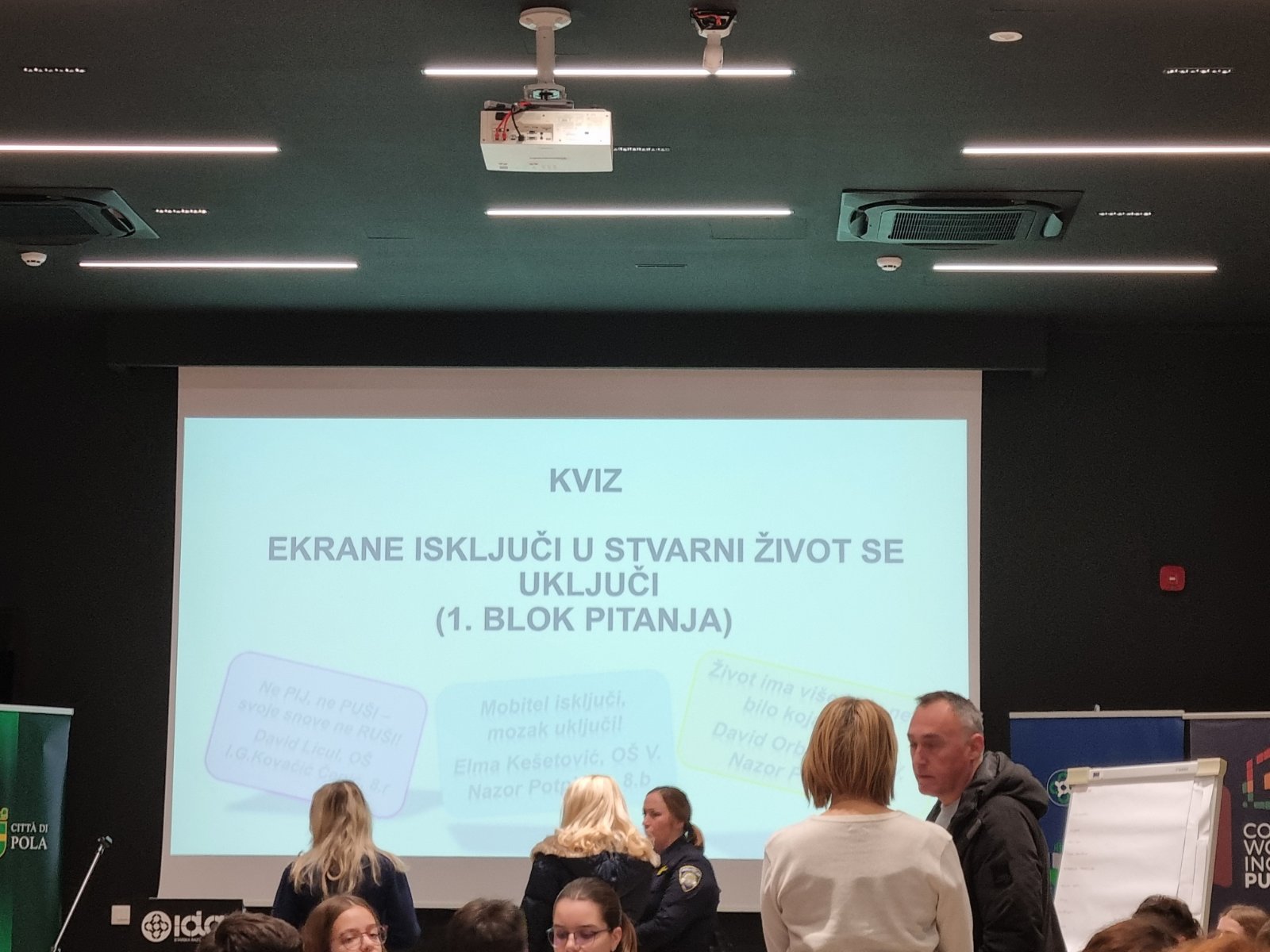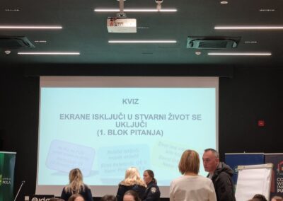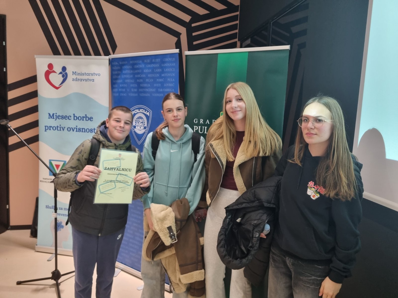 Naši učenici Dunja Virag, Lea Uka, Ema Babić i Patrik Pecirep sudjelovali su u ponedjeljak 8.12.2025. na kvizu ‘Ekrane isključi u stvarni život se uključi’ kojeg organizira PU Istarska, Grad Pula, Služba za mentalno zdravlje i prevenciju ovisnosti i Crveni križ Pula u sklopu obilježavanja Mjeseca borbe protiv ovisnosti.