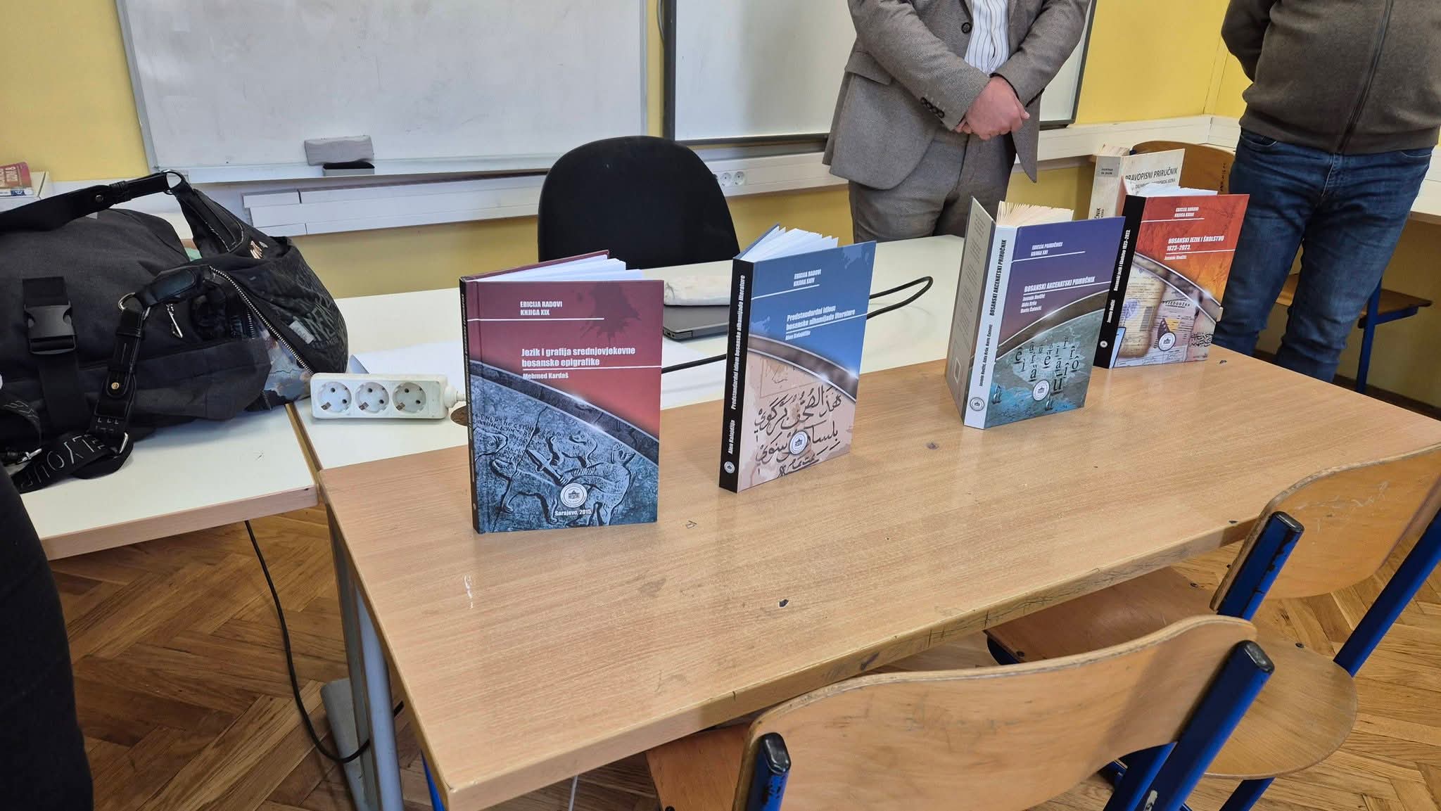 Direktor Instituta za jezik, dr. Jasmin Hodžić, učenicima je predstavio rad i ciljeve Instituta te ih pobliže upoznao sa projektima na kojima su radili i na kojima danas rade. O projektima i radu Instituta je govorio upoznajući učenike sa stručnom literaturom koju su nam donijeli na poklon i koja će u mnogome olakšati nastavu Bosanskoga jezika i kulture po Modelu C.