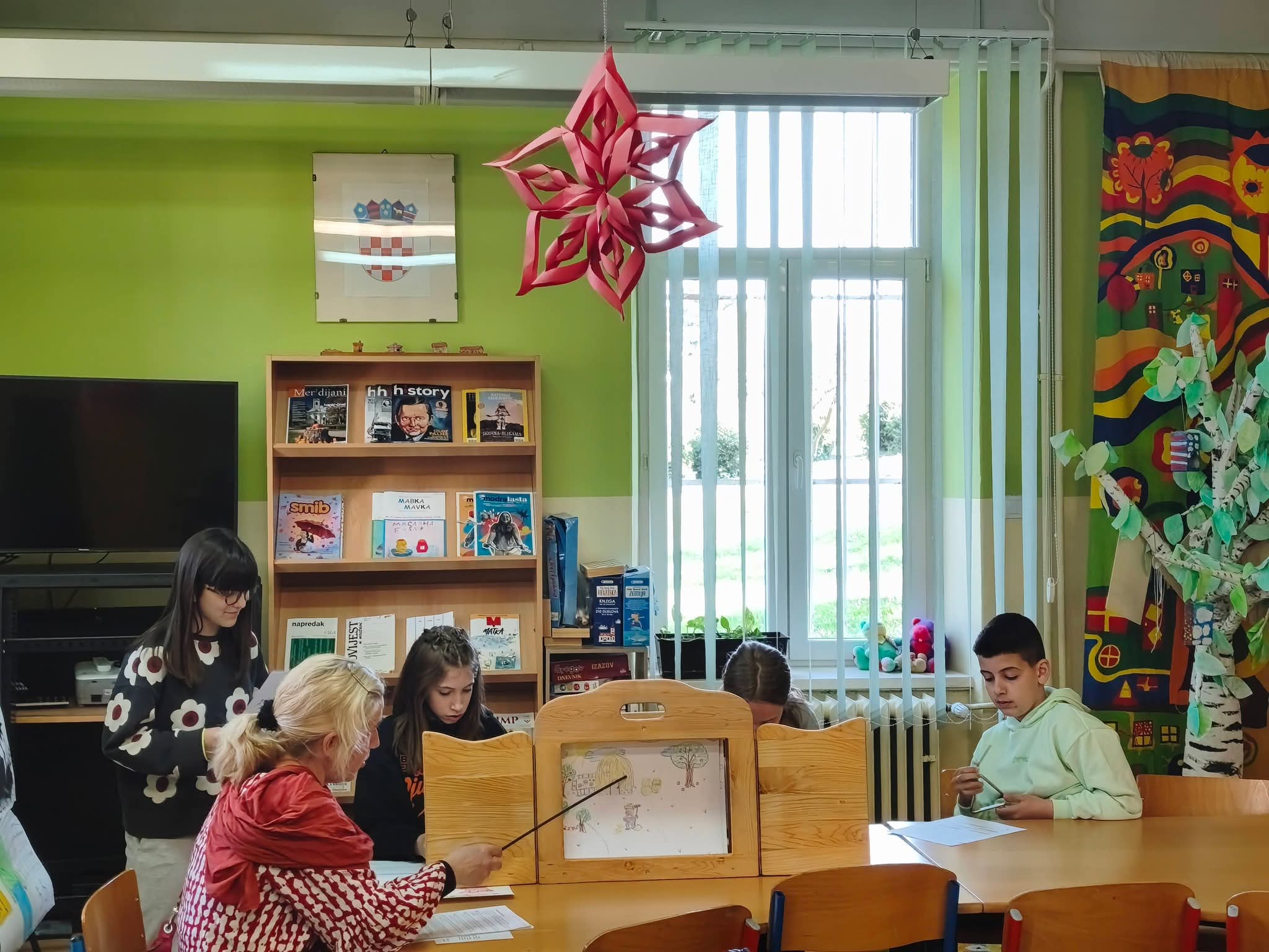 Učenici Pia, Mara, Helena i Alan iz 6.b razreda pripremili su crteže i priču koju su “vrtićancima” izveli na njemačkom jeziku.