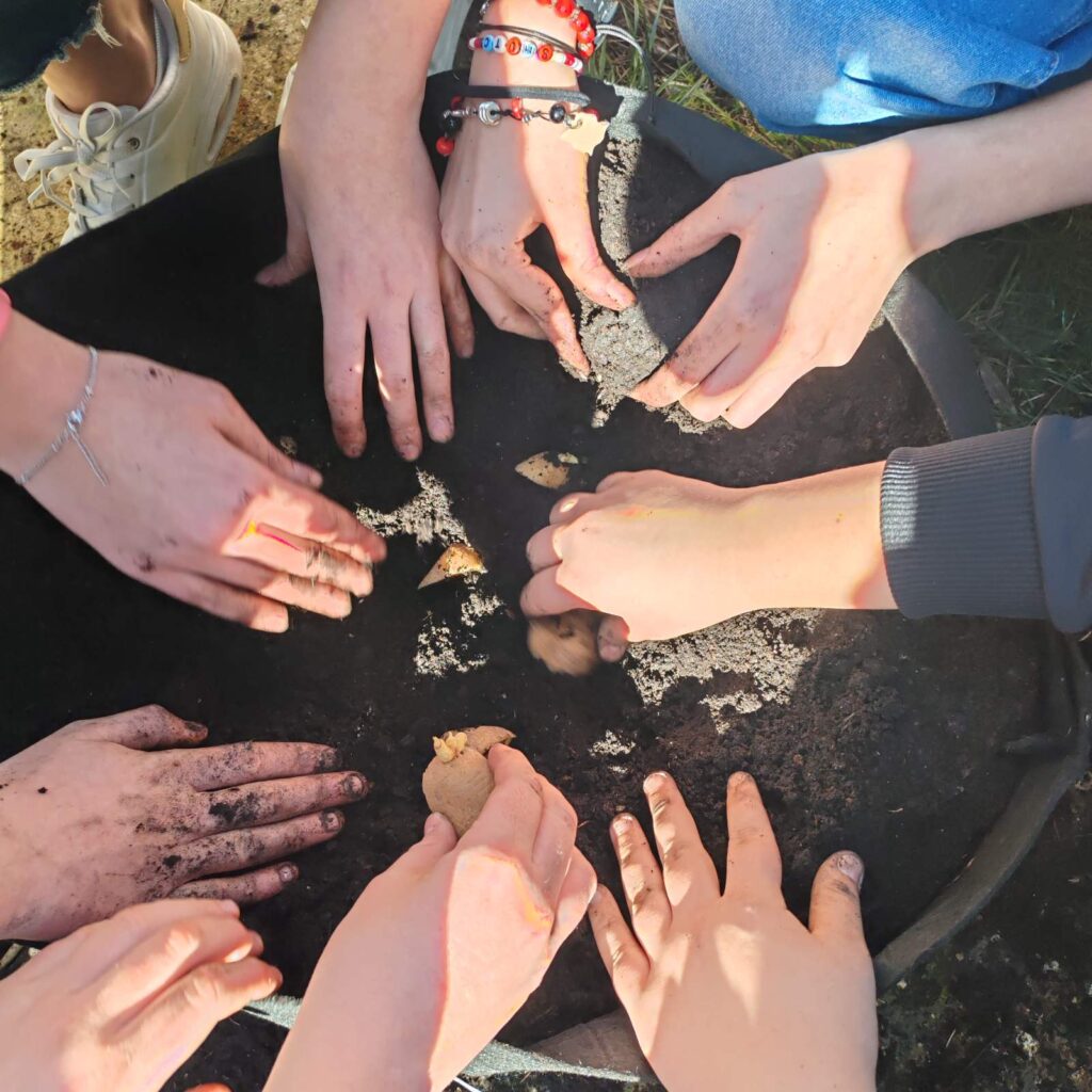 Vrijedne ruke učenika 8.a razreda danas su na nastavi biologije presadili sadnice jagoda, učili o vegetativnom razmnožavanju krumpira i zasijali sjemenje rotkvica, rikole i rajčice!