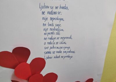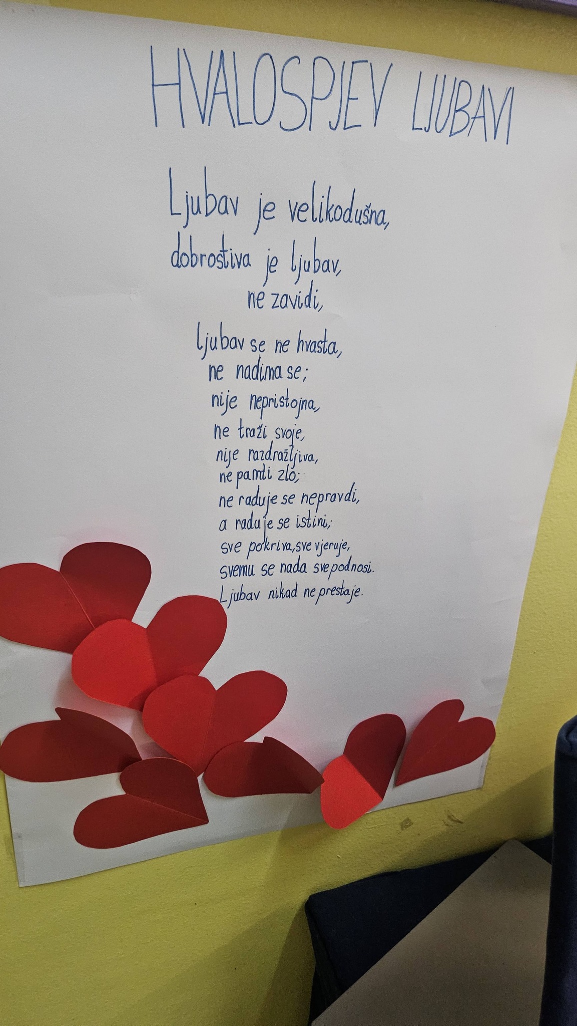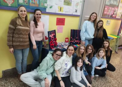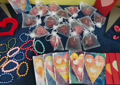 Povodom Valentinova, učenici školske zadruge Eko znalci Montezarci postavili su prodajnu izložbu radova koje su izradili na likovnoj sekciji zadruge, vjeronaučnoj grupi i grupi mladih kemičara. Učenici su na likovnoj sekciji zadruge s učiteljicom Rosanom Zupičić Smoković izradili i oblikovali ogrlice od glinamola, privjeske od filca, viseće ukrase od vune i čestitke s motivom srca. Učiteljica katoličkog vjeronauka Ana Puškarić sa svojom je vjeronaučnom grupom izradila raznobojne narukvice od perli i raznobojne čestitke. Učenici koji pohađaju grupu mladih kemičara s učiteljicom Katarinom Marušić izradili su ukrasne svijeće koje su prethodno rastopili u prigodne kalupe s motivom srca.