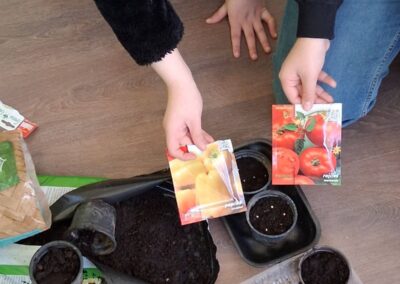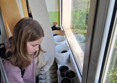 Učenici uče od sjemena rajčice i paprike uzgojiti presadnice i o tome pisati i pričati na njemačkom jeziku.