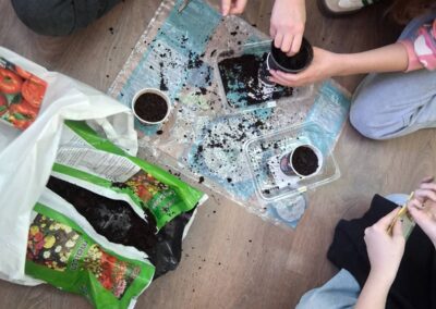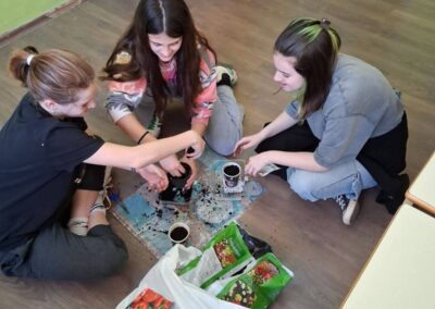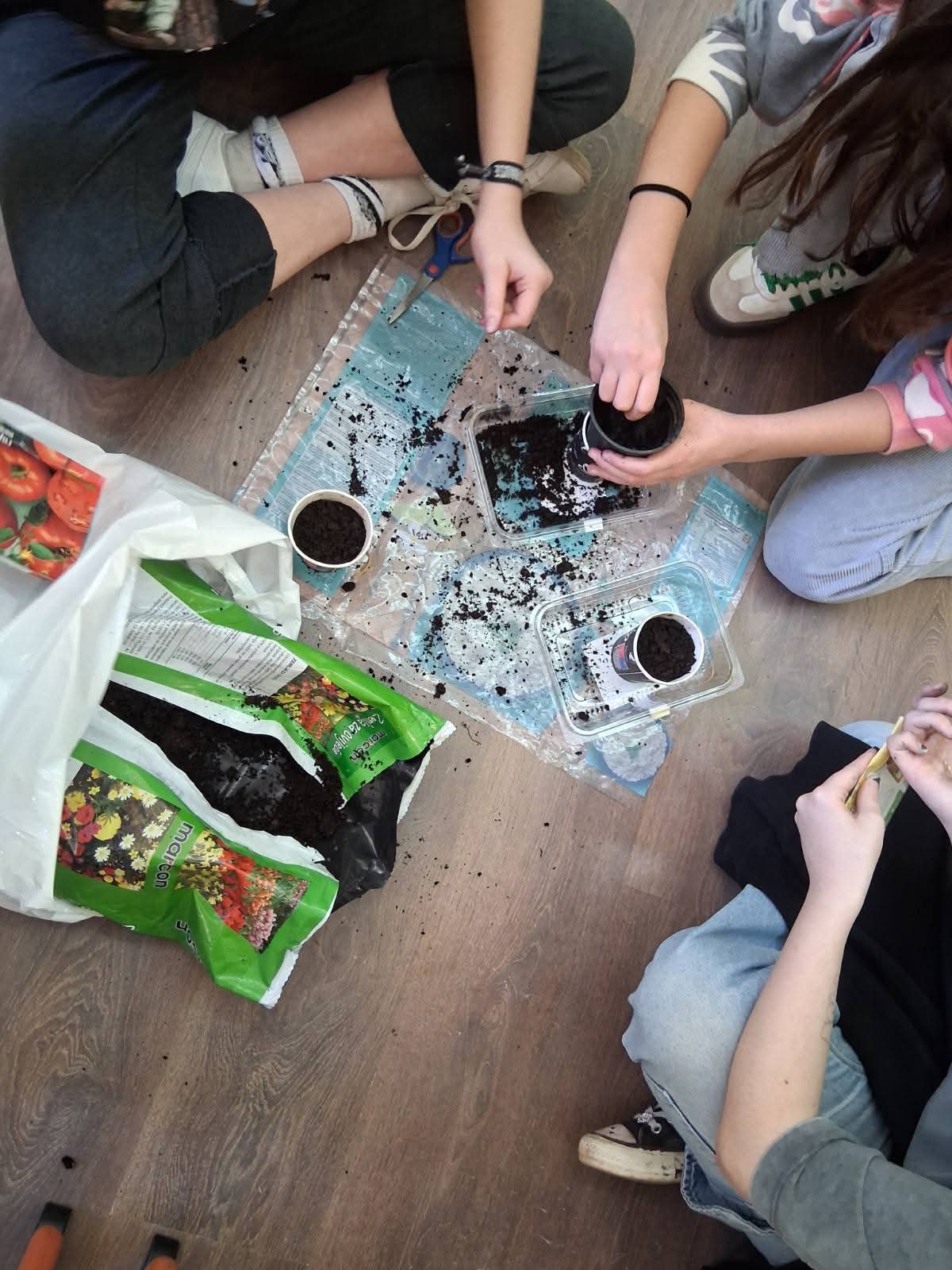 Učenici koji su i prošle godine bili aktivni u radovima sijanja i presadnje pokazali su svoje znanje i vještine: punili posude zemljom, ubacivali glisnjak i posijali sjemenke te ih još prekrili tankim slojem zemlje i zalili.